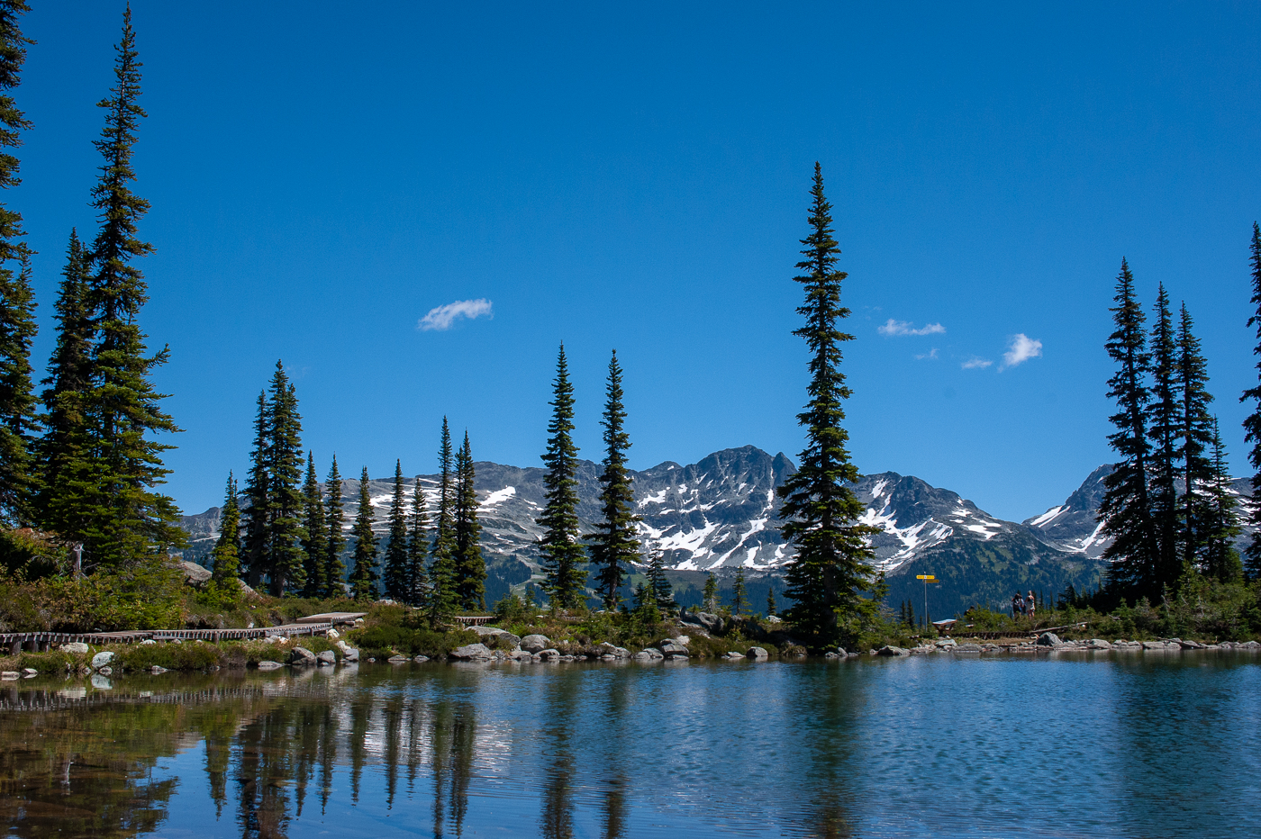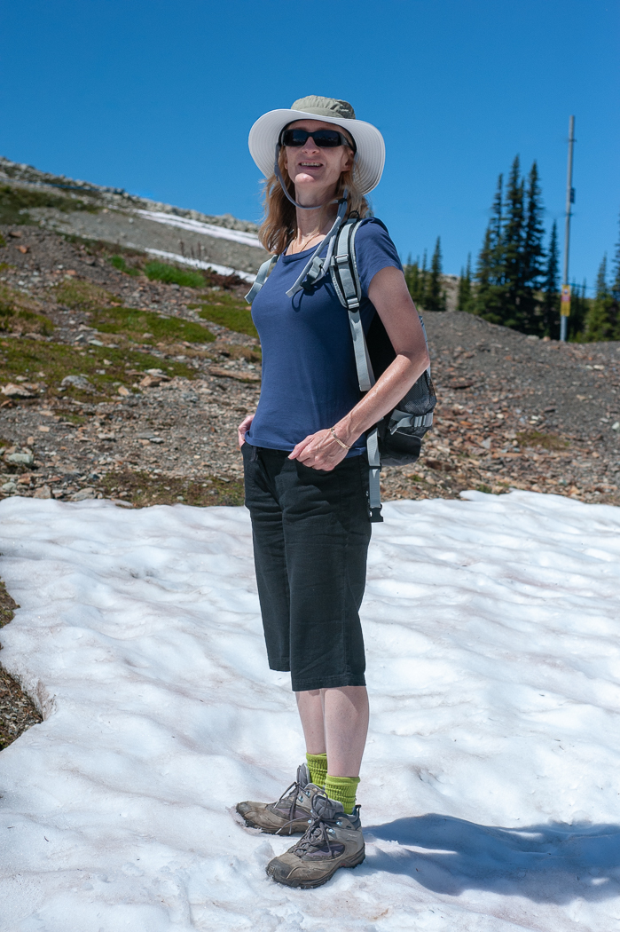 On the Whistler Mountain side, we took a walk around Harmony Lake. Even in mid-July, there is still snow on the ground and there were people skiing just a little higher up.