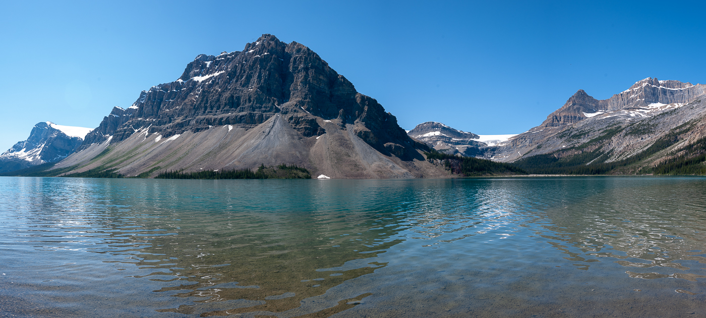 Coffee stop at Bow Lake, with Mt Thompson in the background: