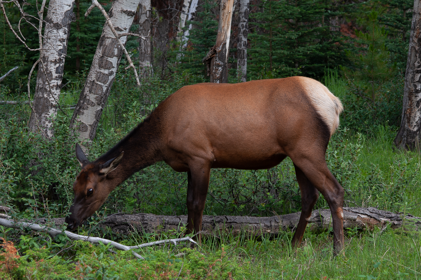 On our return journey back to Jasper, we drove up to Pyramid Lake and spotted this Elk cow (with the distinctive white bum) by the side of the road.