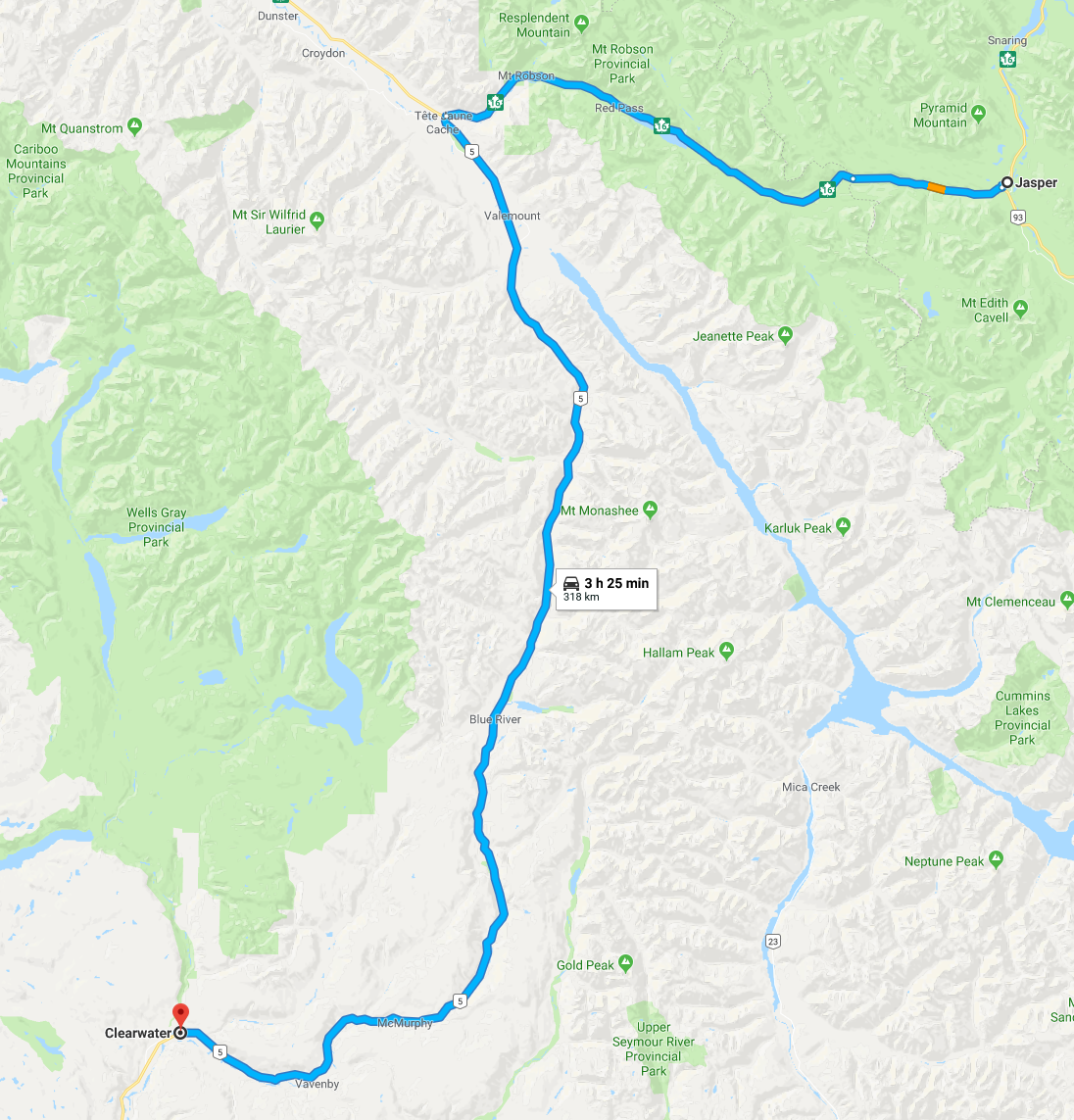 Soon after leaving Jasper, we crossed the Alberta / British Columbia province boundary - and gained an hour!