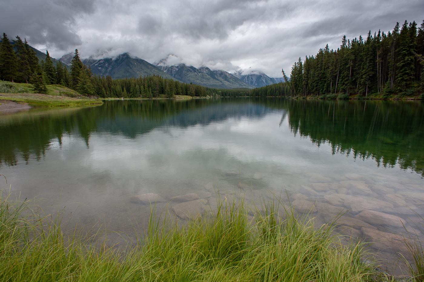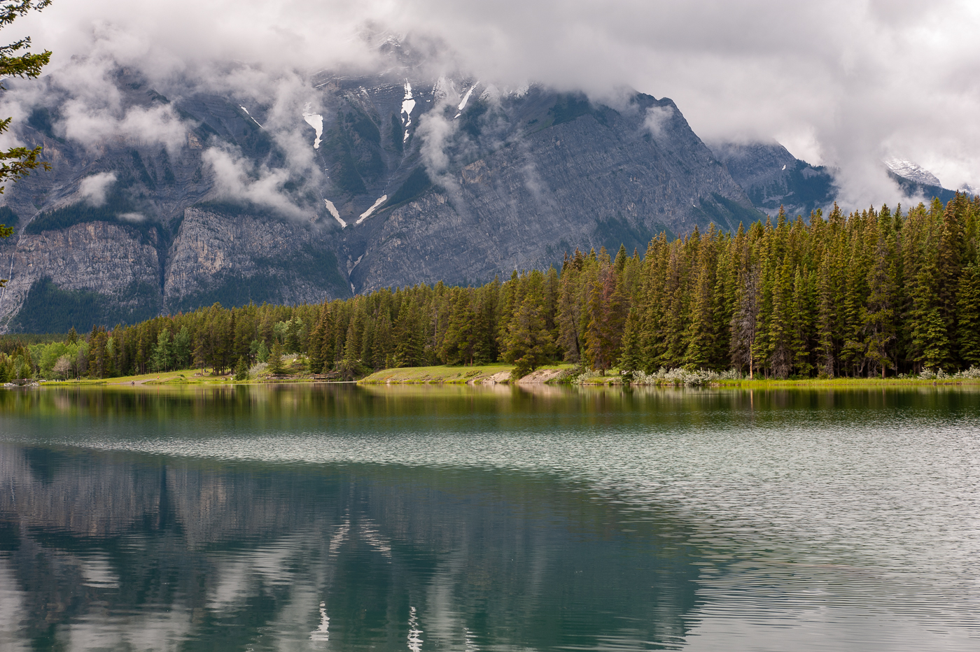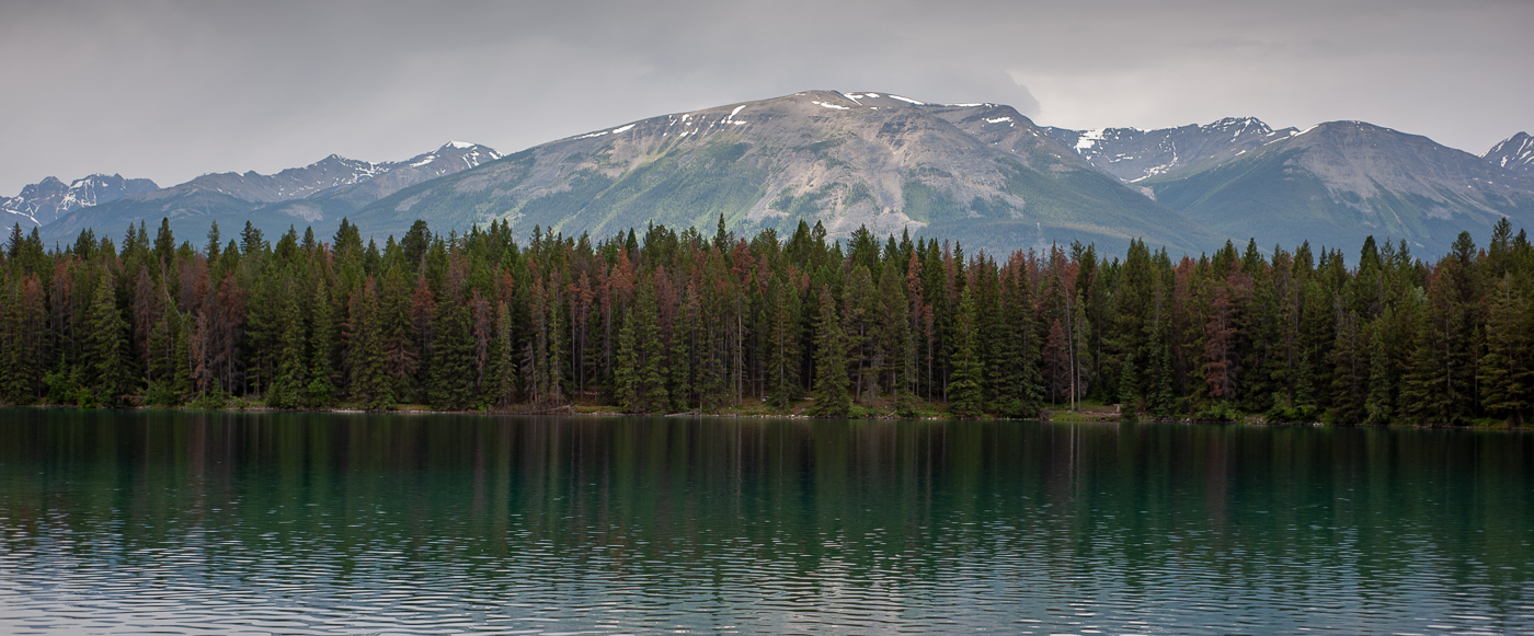Although the day was quite dull, we had a lovely walk around the local lakes, all walkable from our B&B in Jasper. These photos are of Lake Annette.