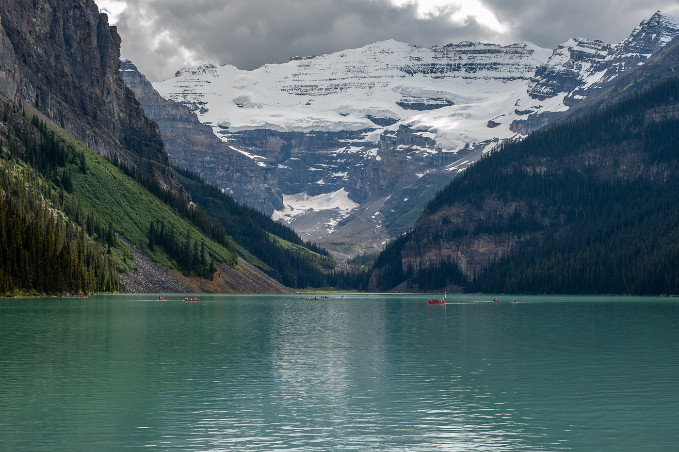En route back to Banff (by this stage it was late afternoon), we risked the crowds at Lake Louise - and to our surprise, parked easily. While the lakeside was still busy, as ever, walk a short distance from the car-park and there was some peace and quiet to be had: