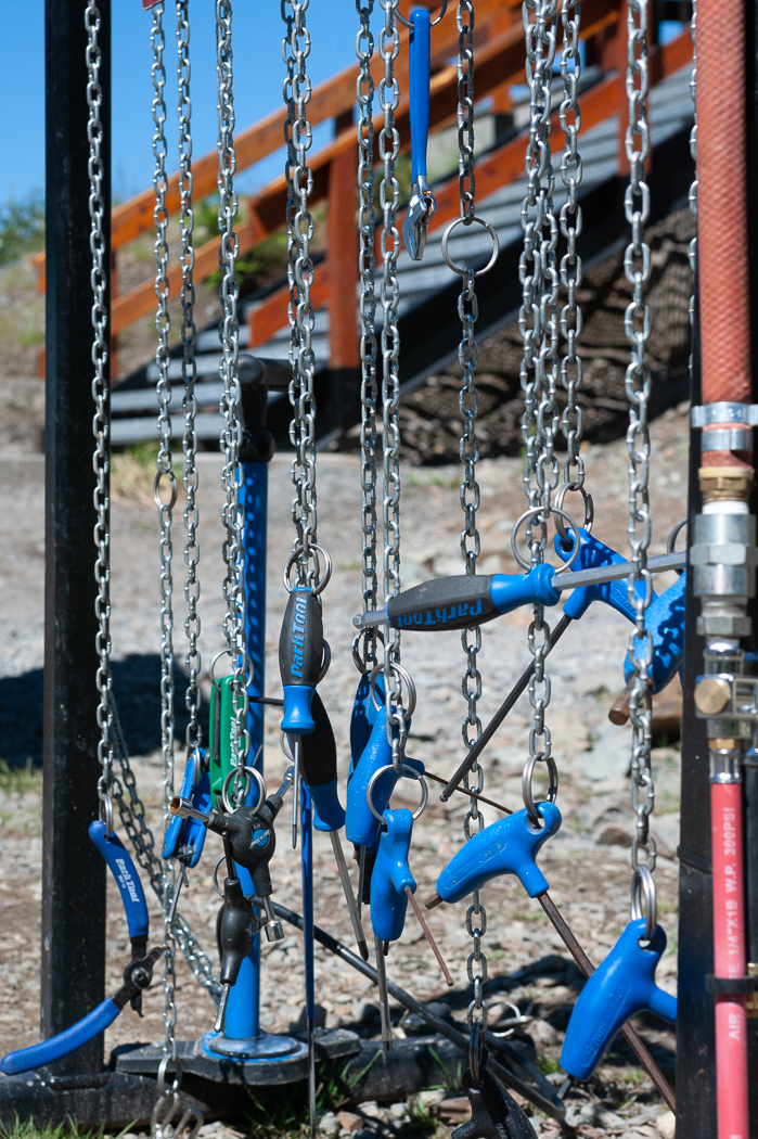 Although known predominantly as a ski resort, Whistler Mountain (and the neighbouring Blackcomb Mountain) remain very busy throughout the year, with many chairlifts carrying hikers and bikers up the mountian. There is even a station for a bit of bike fettling before making your way down the mountain.