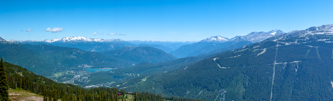 The Peak to Peak Gondola connects the two Whistler Mountain peaks and holds records for being both the highest and longest gondola in the world. The span between supports is almost 2 miles. You can just about see the red cars below:
